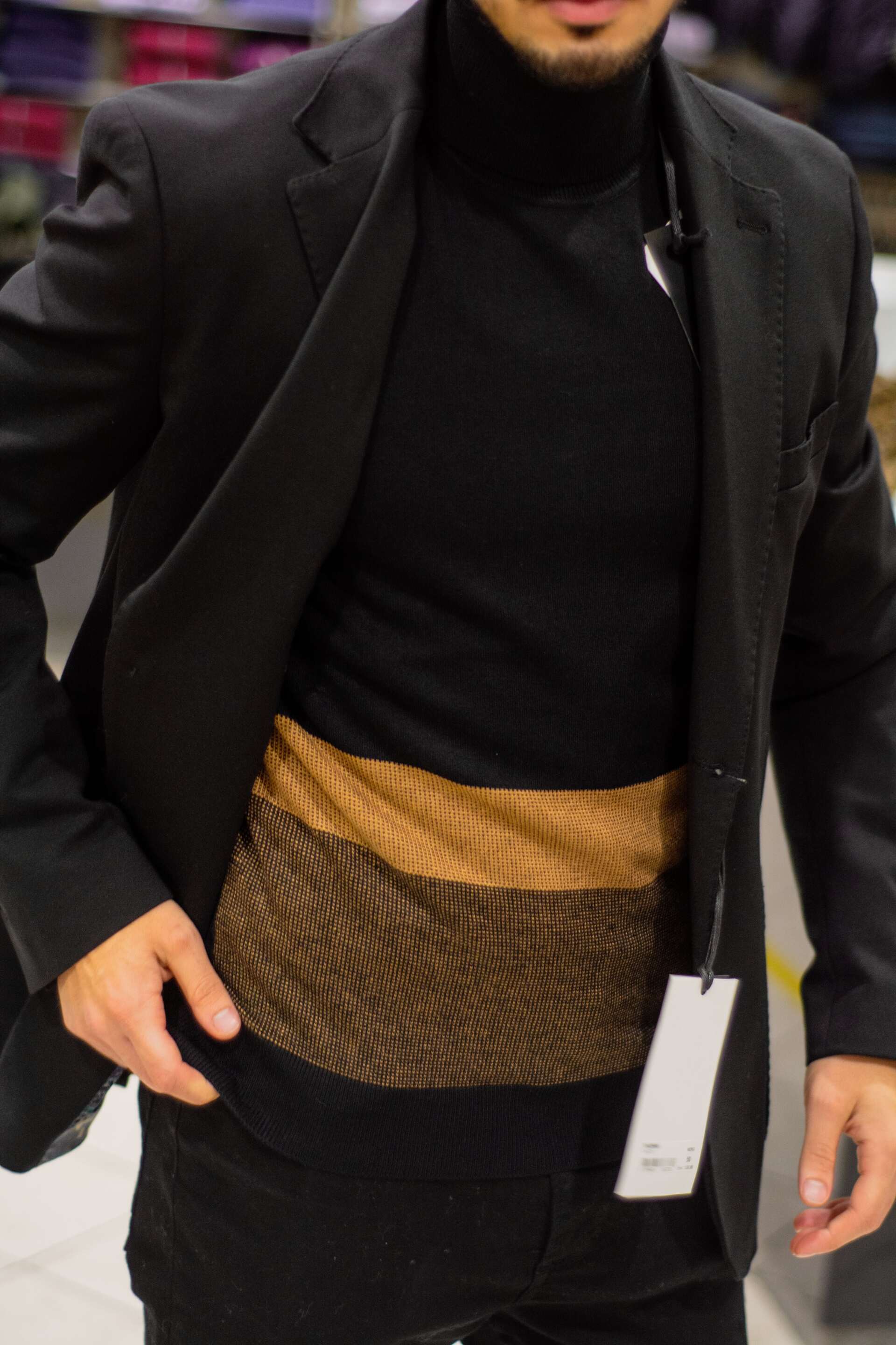 Mark up | Maglia dolcevita fantasia banda in contrasto sul fondo corpo e fondo maniche finiture a coste